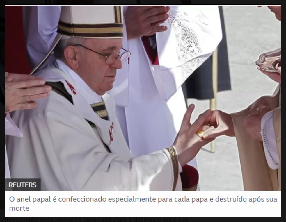 da autoridade de um pontífice. Assim que um papa morre, a joia é imediatamente